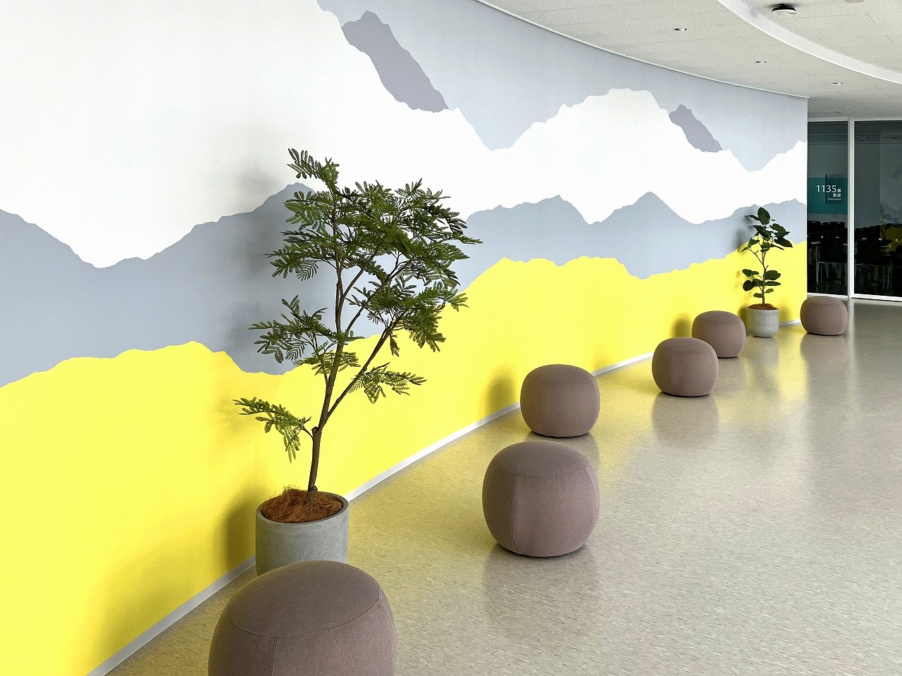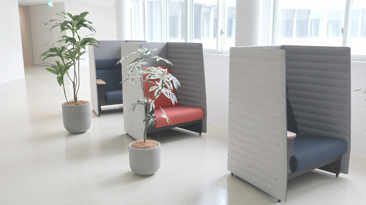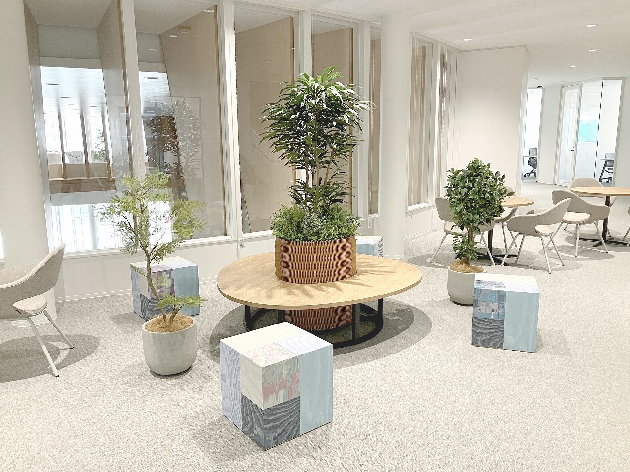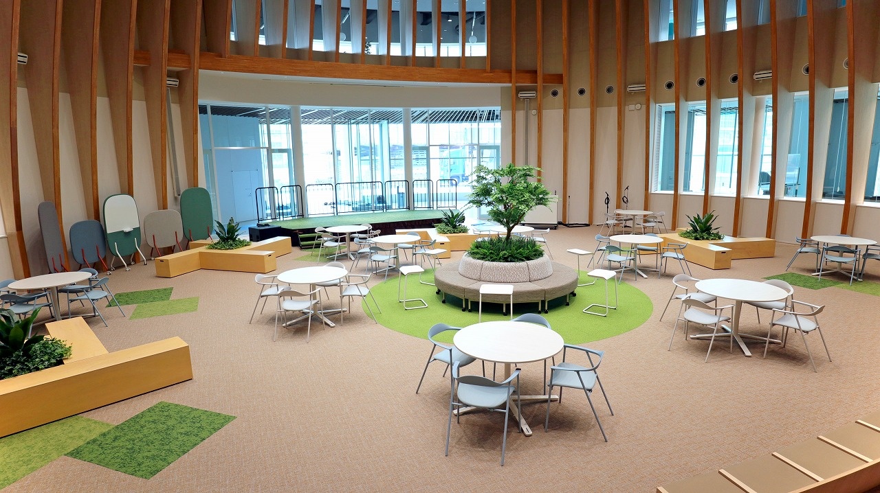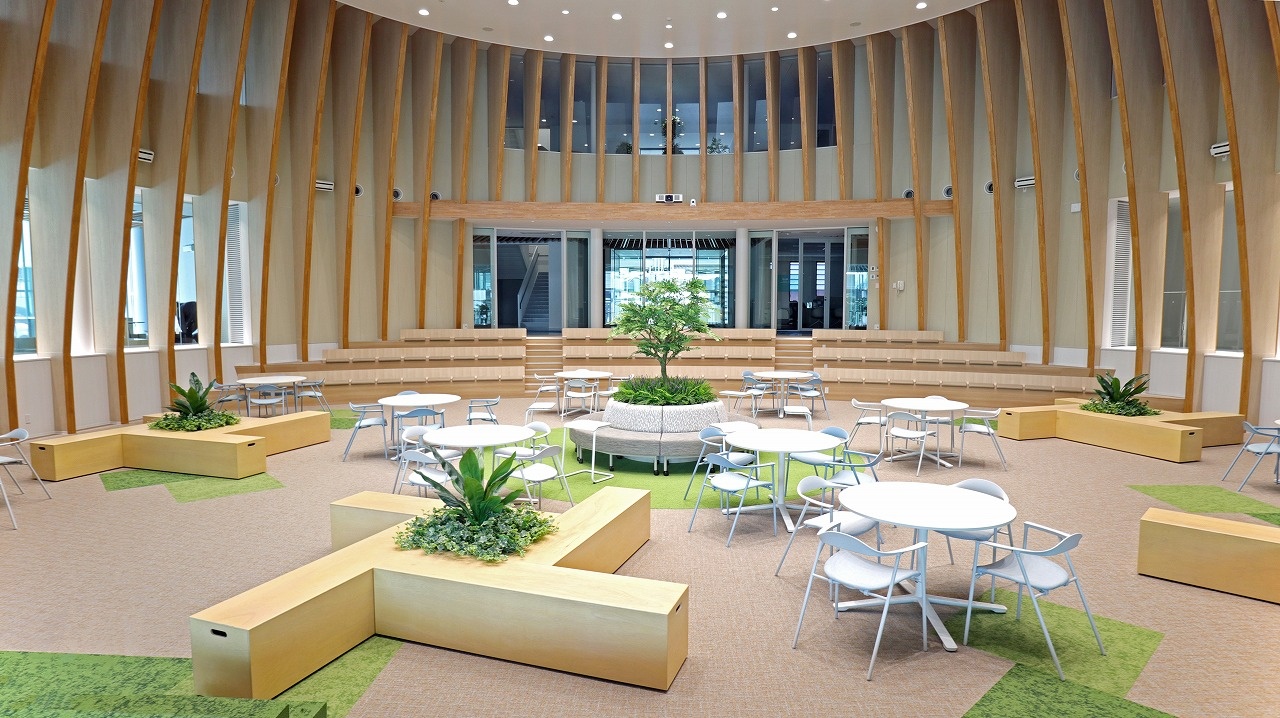 通常時はデザイン性のある家具に植栽をあしらい、「学生の憩いの場」にふさわしいカジュアルな