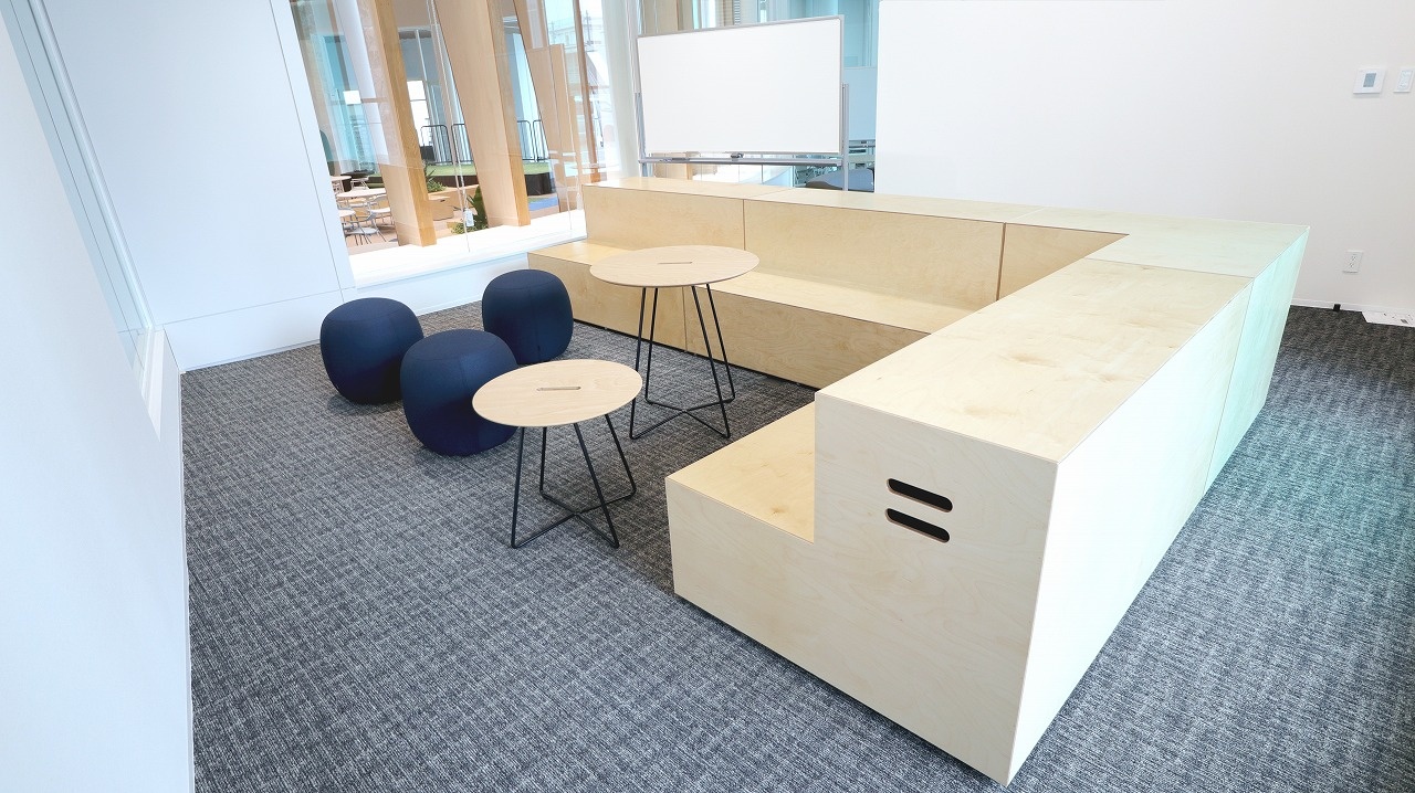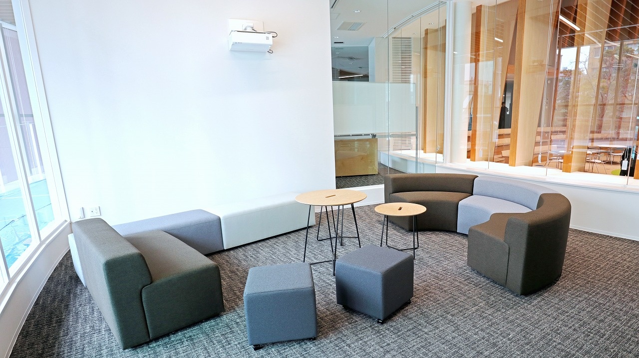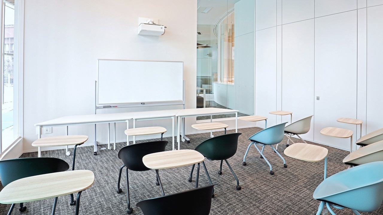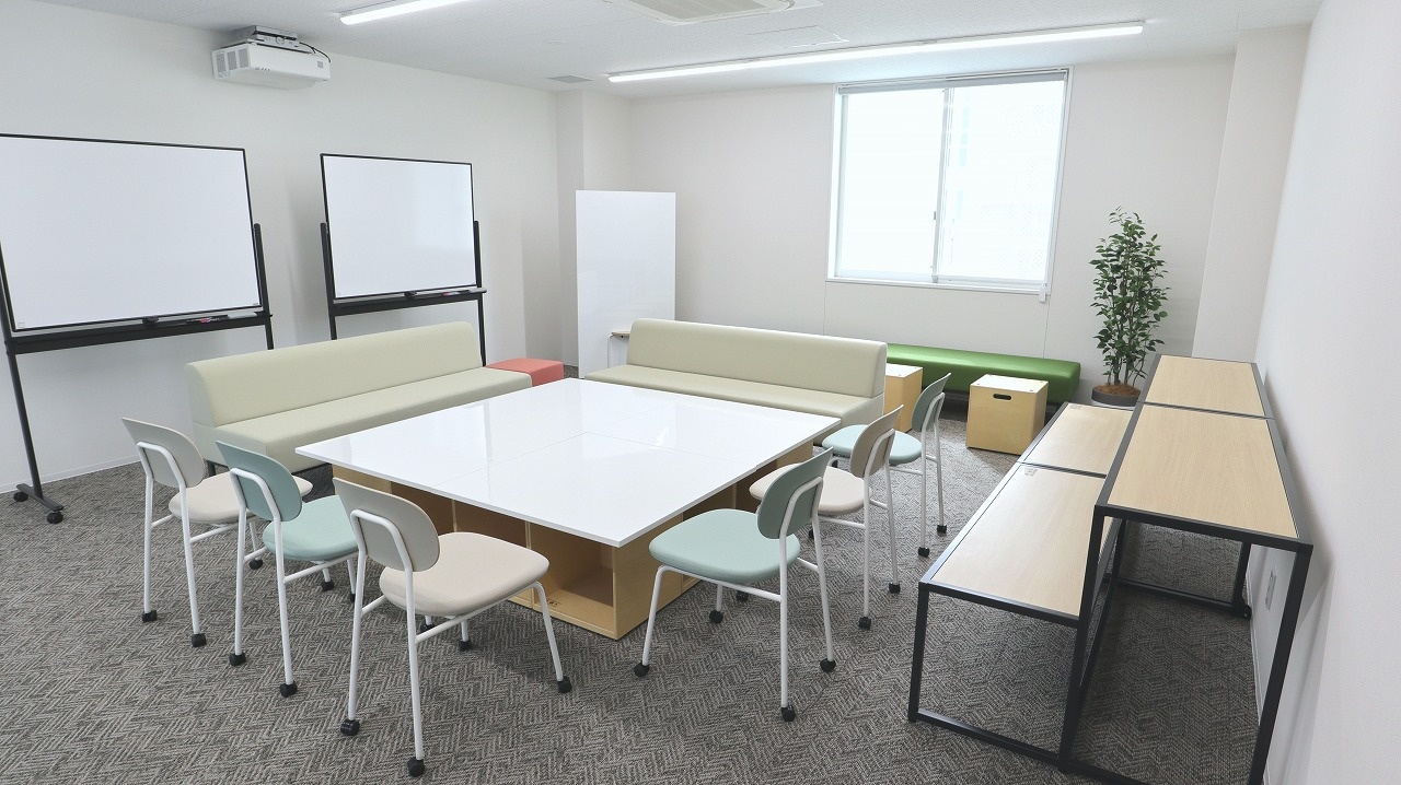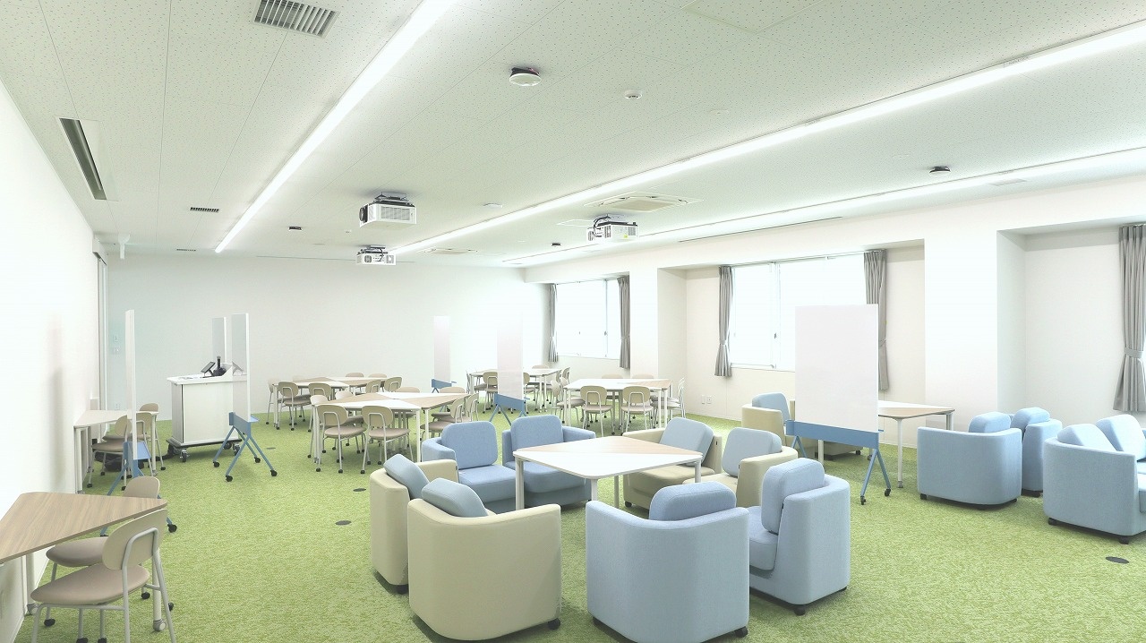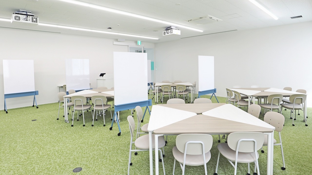 アクティブラーニングルームや自習ラウンジ、講義室などを設置。フレキシブルに動かせる家具、