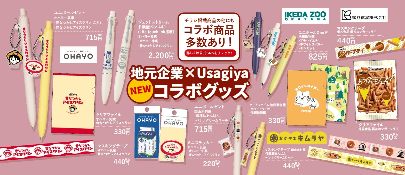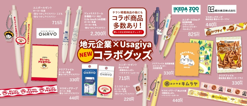 また11月1日より、株式会社岡山木村屋と梶谷食品株式会社、株式会社池田動物園のうさぎやオリジナルデザイン文具・雑貨を販売します。