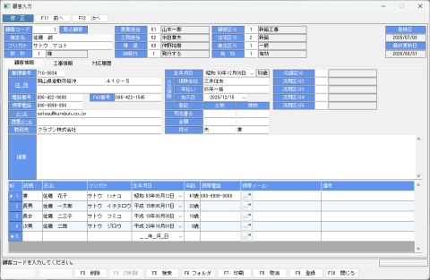工務店様向け顧客・施工データ管理システムです。 各種顧客情報及び、定期点検、アフター点検、業者、器材を顧客データとリンクし、社内にて顧客情報を一元管理するためのシステムとなります。 顧客データの登録...
