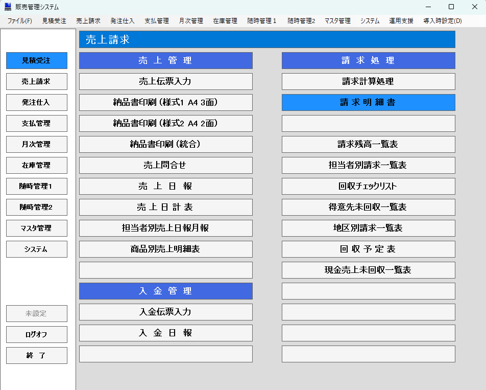 - 入金管理(入金入力・入金日報・現金・掛売 未集金一覧)