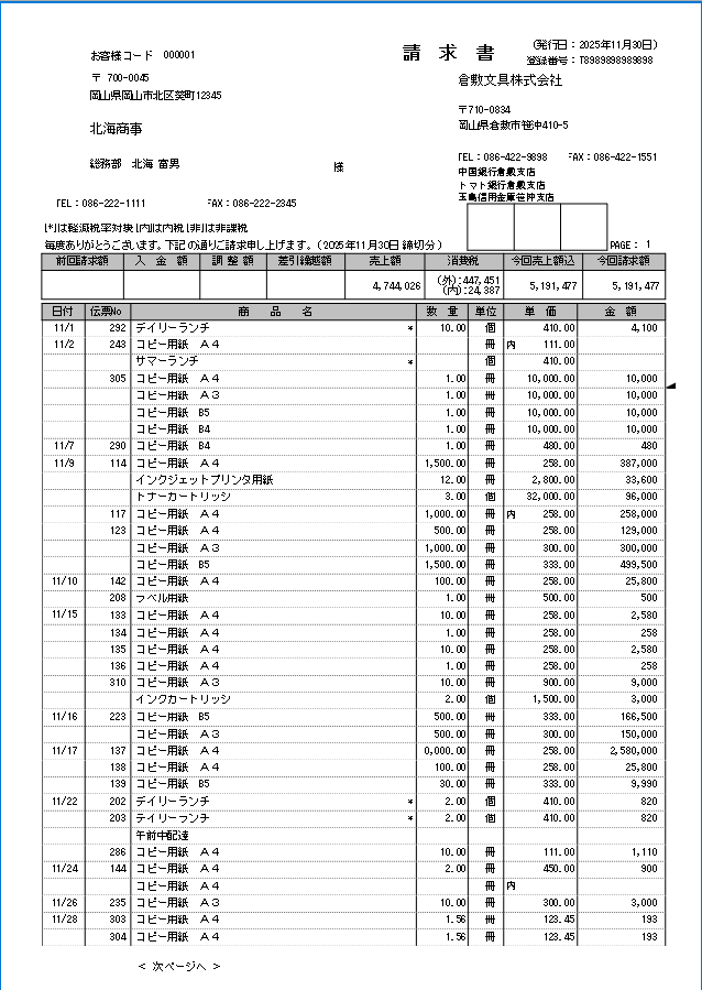 - 請求管理(消費税調整 請求書発行・請求一覧表)