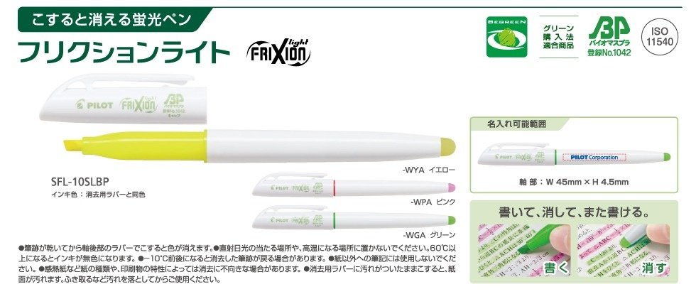 - バイオマスフリクションボールペン(パイロット)