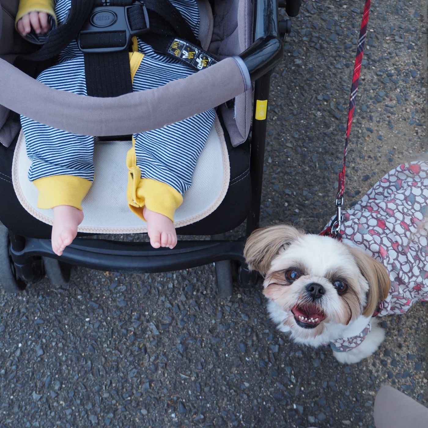 まだ今は、ベビーカーにのせて一緒に散歩するのがちょうどよい距離のようです。