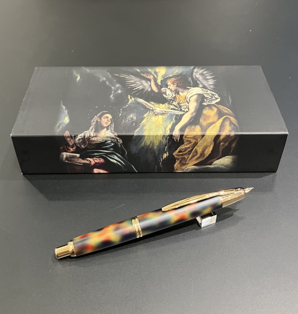 万年筆の化粧箱スリーブは大原美術館さんの許可を得て受胎告知をそのまま印刷しているので、